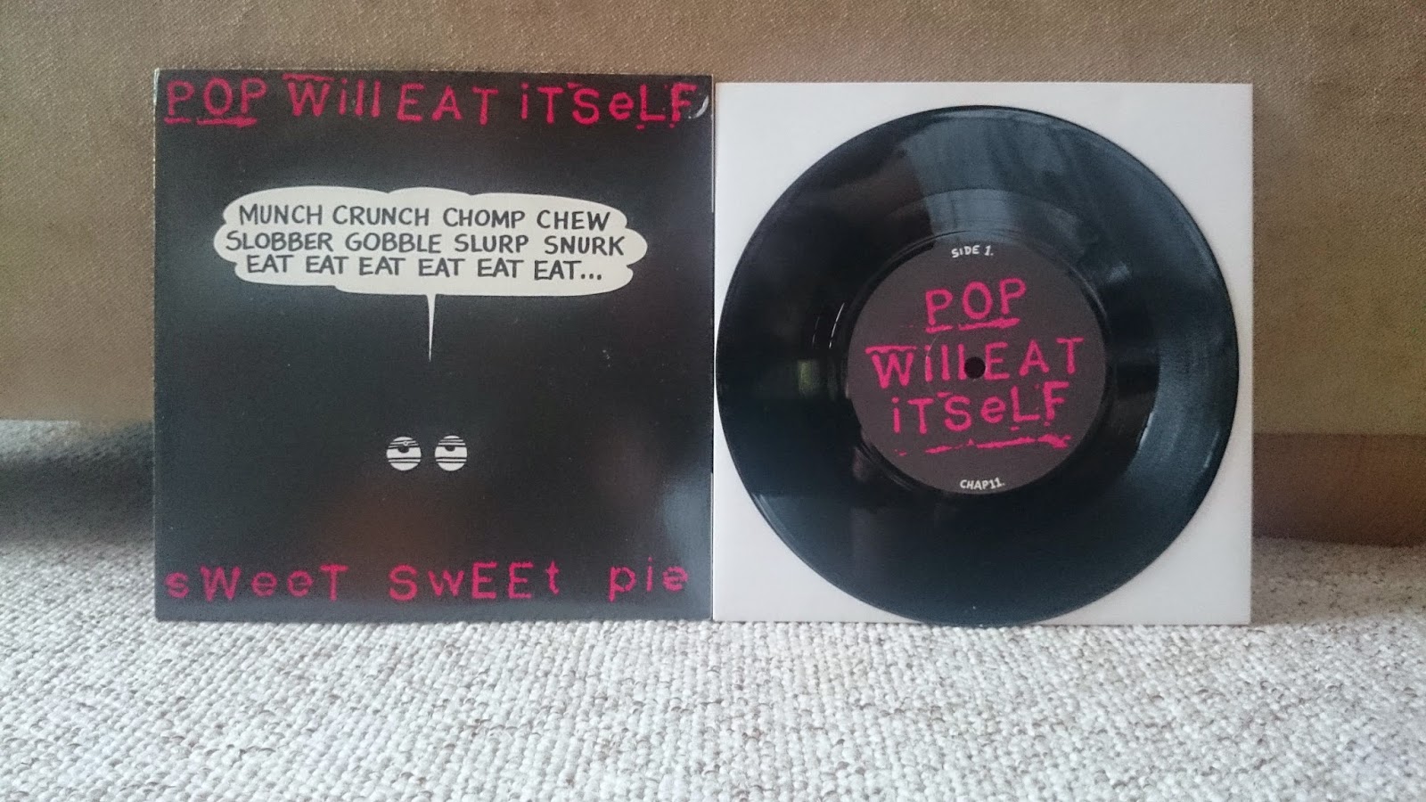 Around 2002 I was in that rare and lucky situation of having a steady income (from my part time job pushing trolleys) and no real outgoings (because I was a teenager living at home) which meant I bought a lot of records by bands I liked, regardless of whether there was really anything notable on that record or not. A prime example of that is this Pop Will Eat Itself 7".